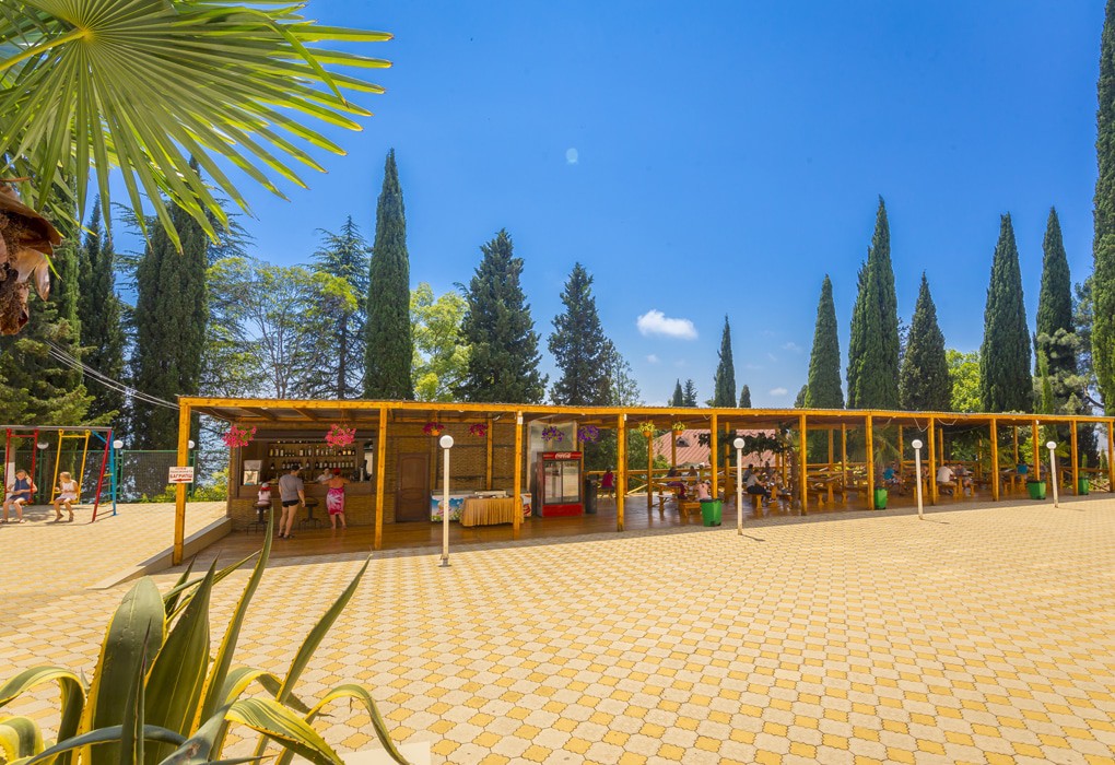 - расположен в сосновом лесу на своей территории