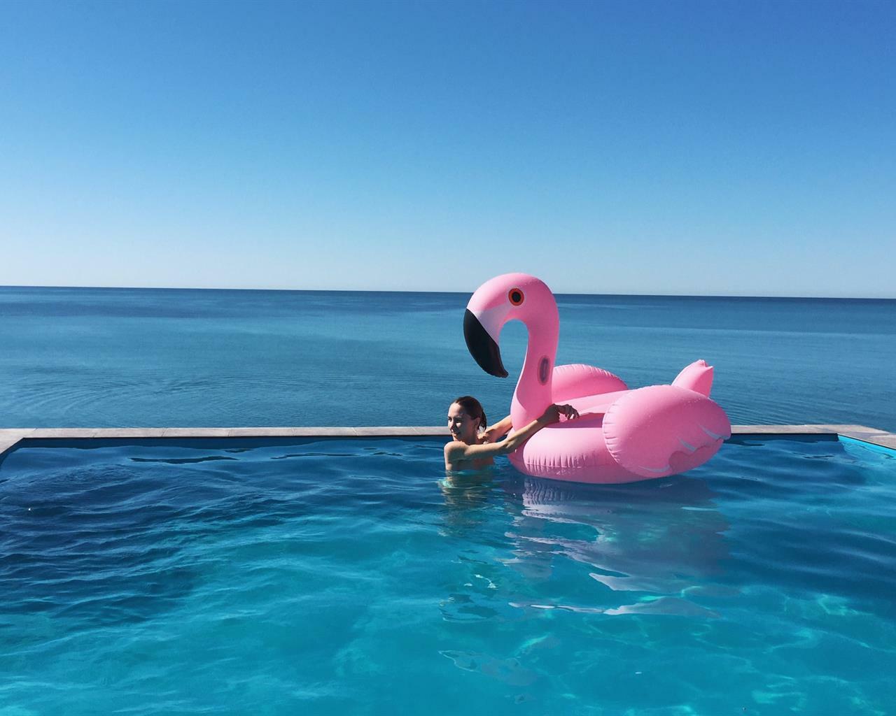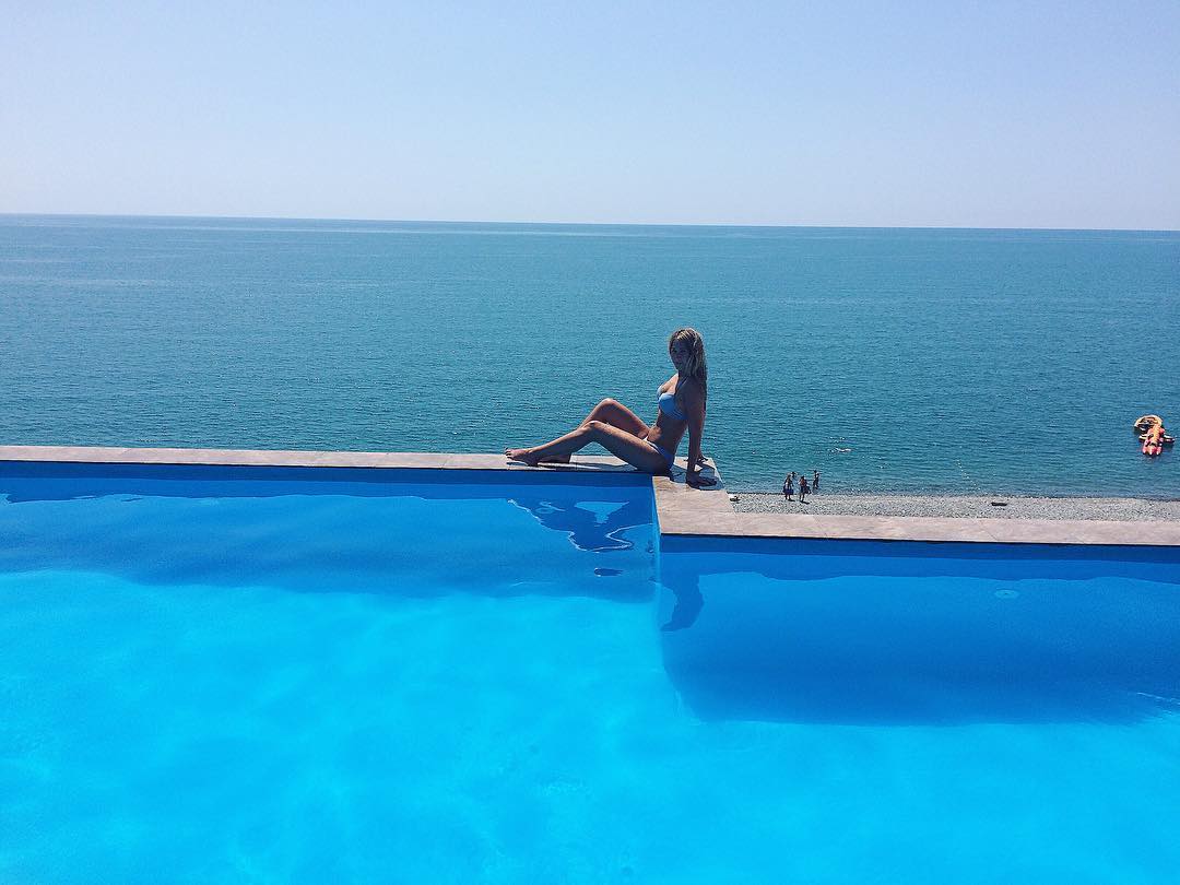 Бассейн открытый, находится на крыше, 12х6, вода пресная, шезлонги, зонты.