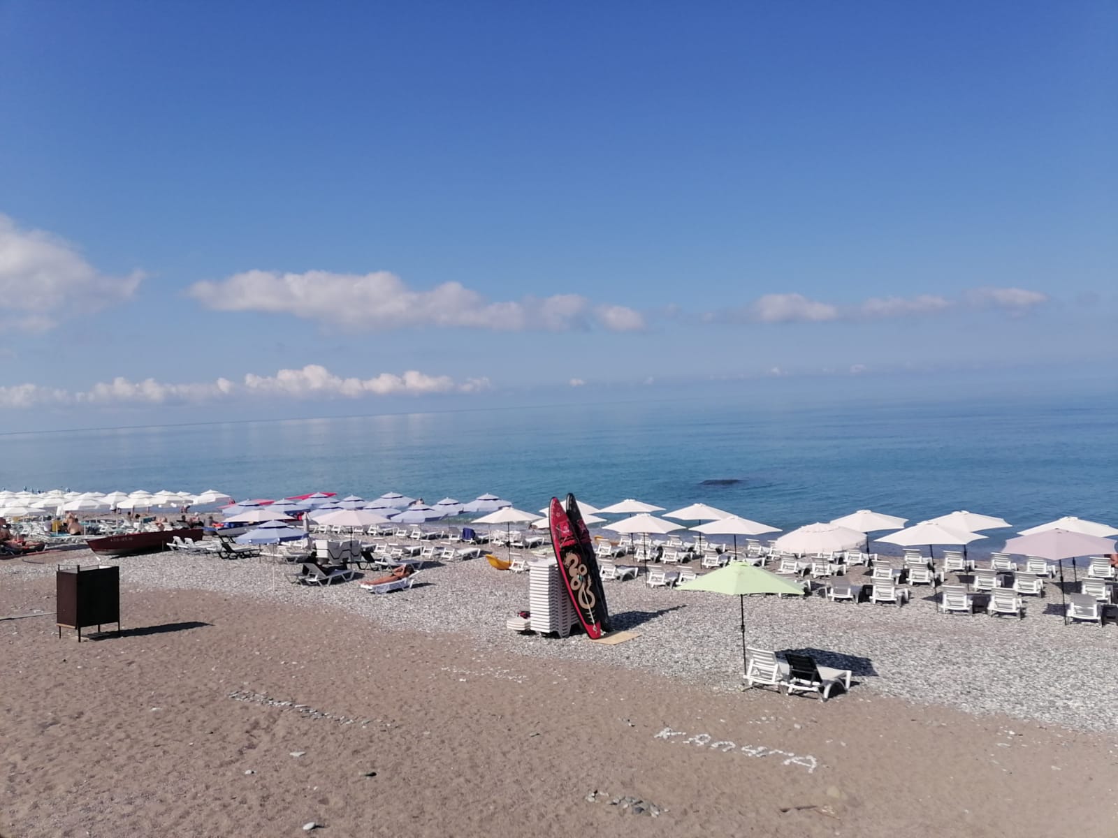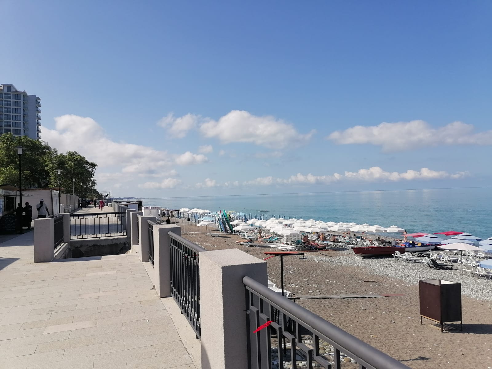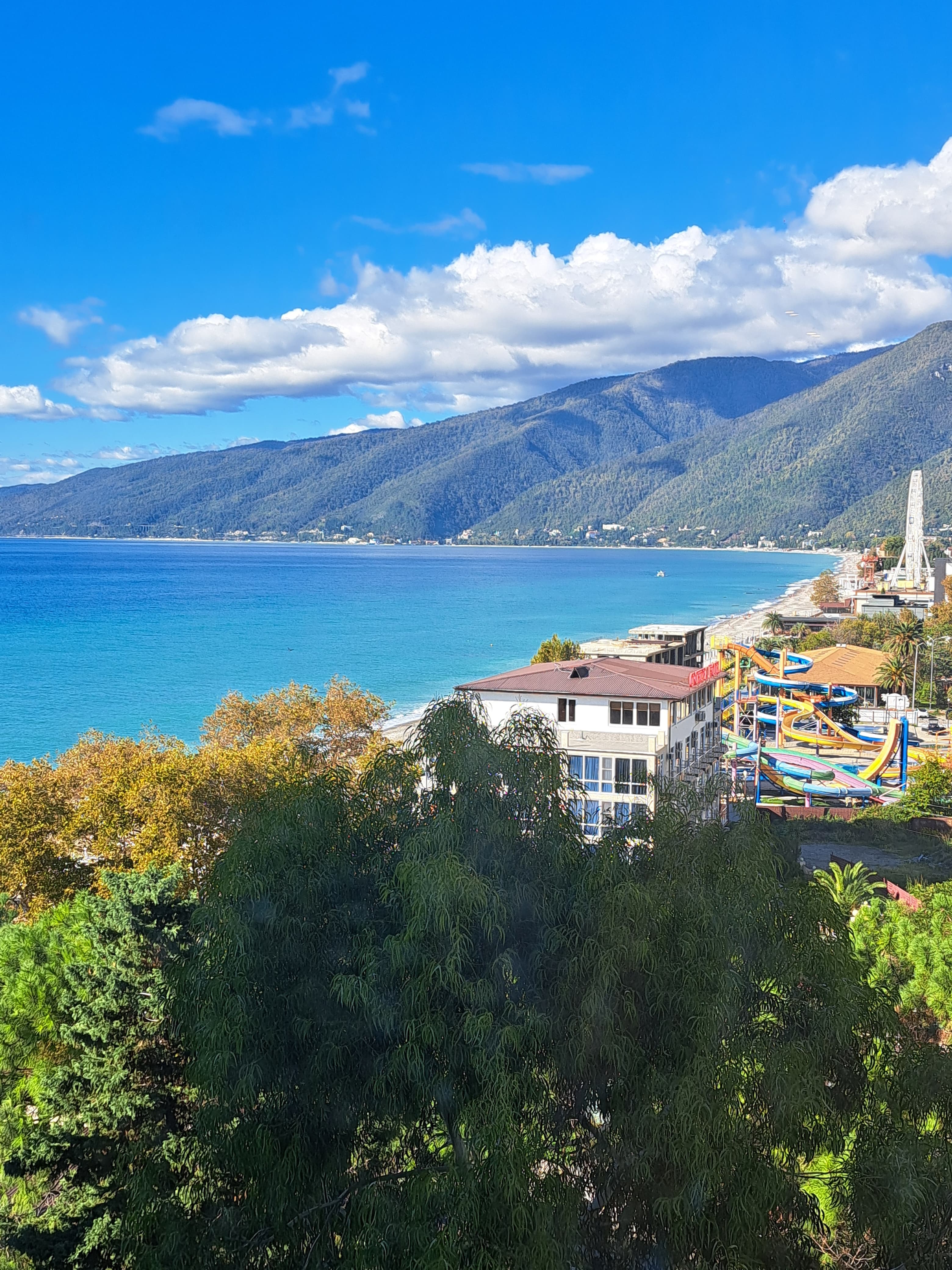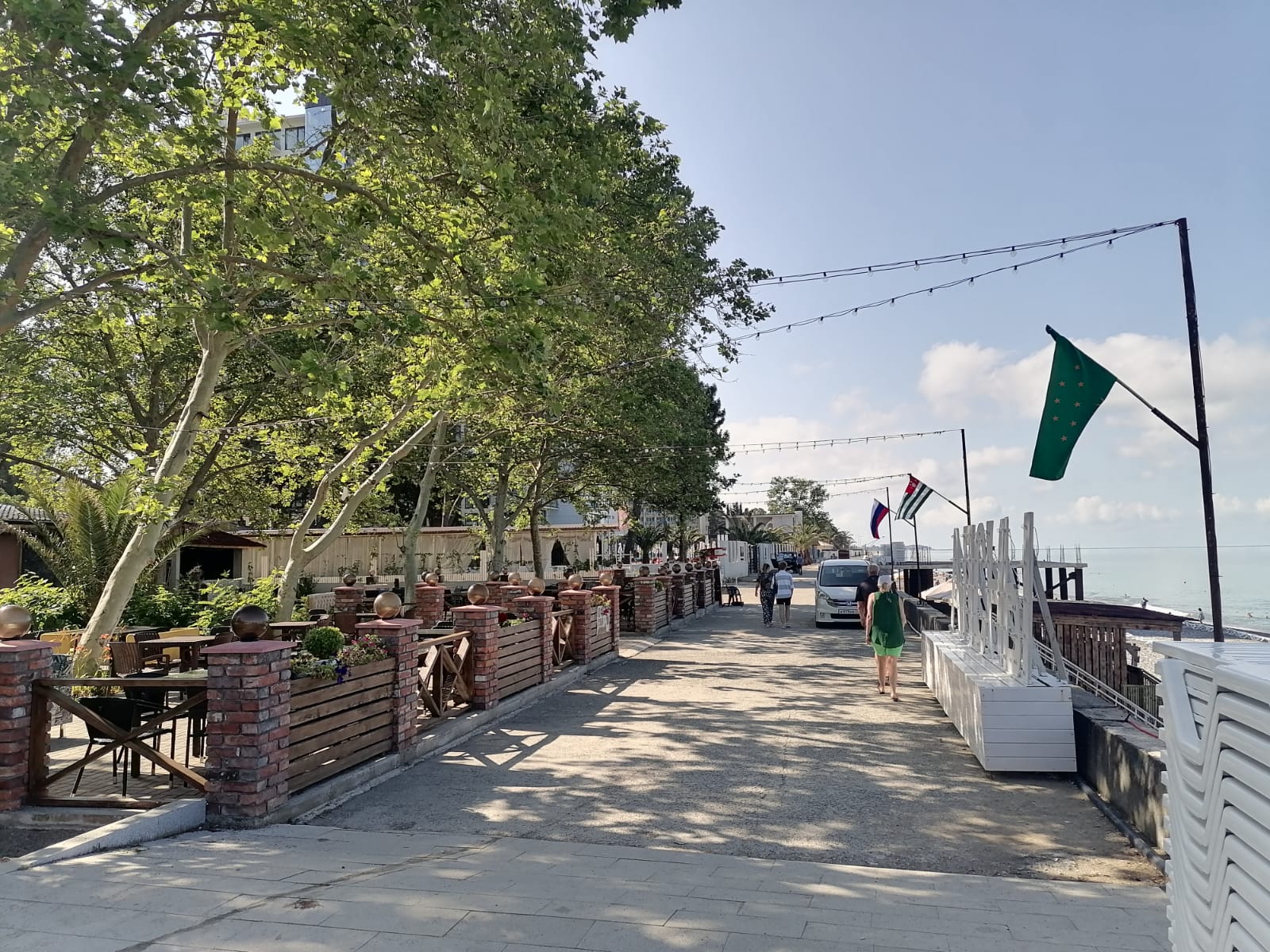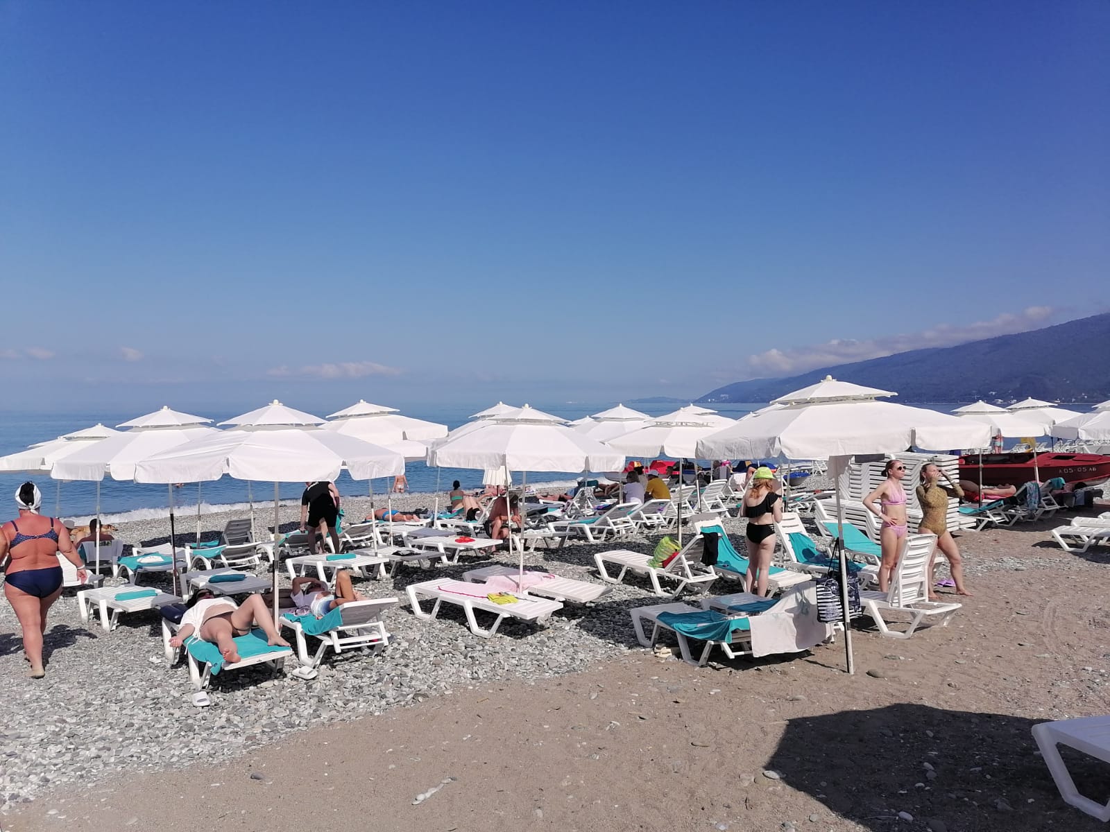 Поездом или самолетом до г. Сочи (Адлер), далее на общественном транспорте или на такси до «Казачьего рынка» (8 км от ж/д вокзала, 15 км от аэропорта), затем пройти пешком около 500 м до пограничного поста на р. Псоу до границы России и Абхазии. После самостоятельного прохождения паспортного и таможенного контроля до места отдыха можно доехать на автобусе, маршрутном такси или воспользоваться услугами частных водителей.